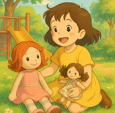 Era uma vez duas bonecas muito especiais. A maior se chamava Filha, e a menor, com um vestidinho florido, era chamada de Filha da Filha. Elas moravam no quarto encantado de uma menina muito carinhosa chamada Maria Helena.