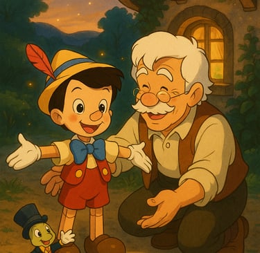 Once upon a time, there lived a kind old man named Geppetto. He lived alone in a cozy little house filled with tools, toys, and wooden inventions. More than anything, Geppetto wished for a child of his own.