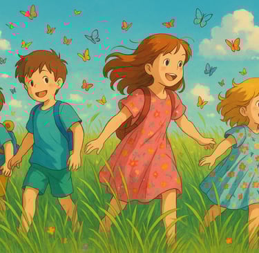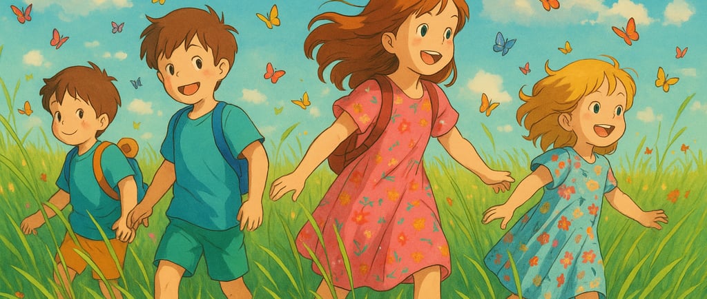 Once upon a time, there were four siblings: Lara, Tomás, Nina, and Bento. One sunny afternoon, they decided to play in the backyard.