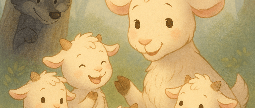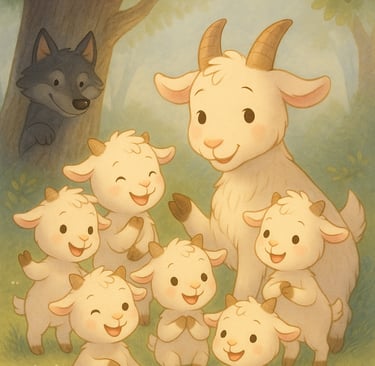 Once upon a time, in a peaceful clearing deep in the forest, there lived a mother goat and her seven playful little kids.