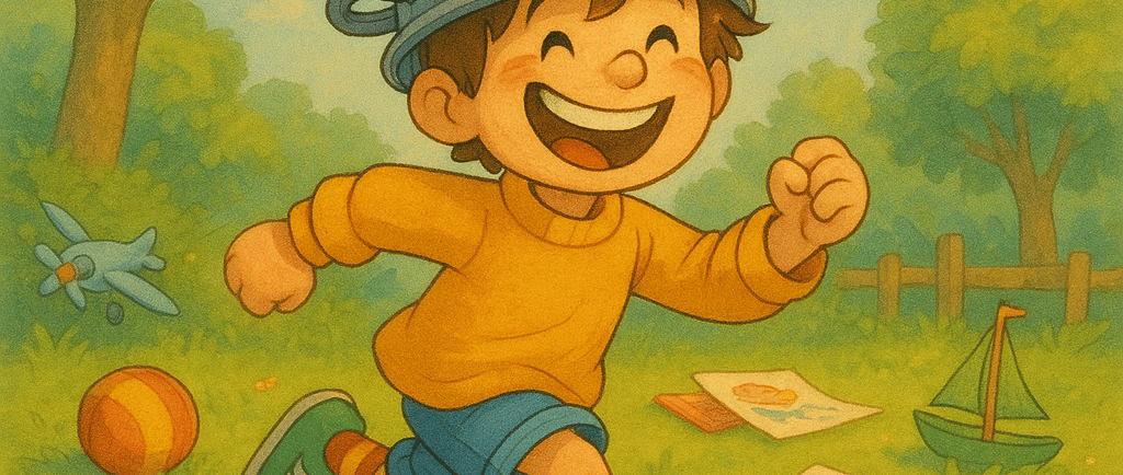Era alegre, listo y lleno de ideas. Jugaba a ser astronauta en el patio, hacía castillos de jabón en la bañera y, una vez, intentó hacer una cometa que volara con burbujas de refresco. (¡No funcionó… pero fue muy divertido!)