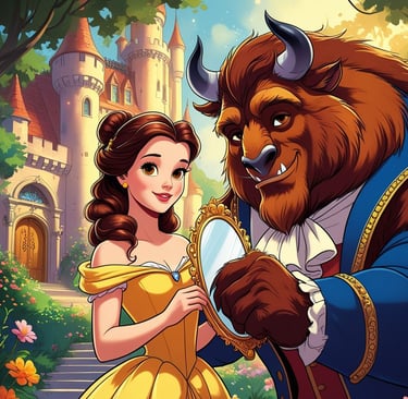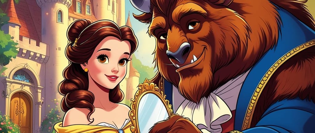 Al principio, Bella tenía miedo. Pero con el paso de los días, comprendió que el castillo era mágico: los cubiertos bailaban, los relojes hablaban y la biblioteca era más grande que cualquier cosa que hubiera visto. La Bestia, a pesar de su apariencia feroz, poco a poco se mostró amable, tímida y hasta divertida.