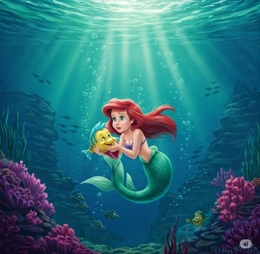 Érase una vez, en el fondo del mar, una joven sirena llamada Ariel. Tenía el cabello rojo como el coral, una hermosa cola brillante y una voz encantadora.