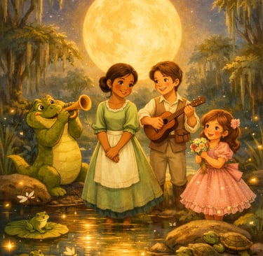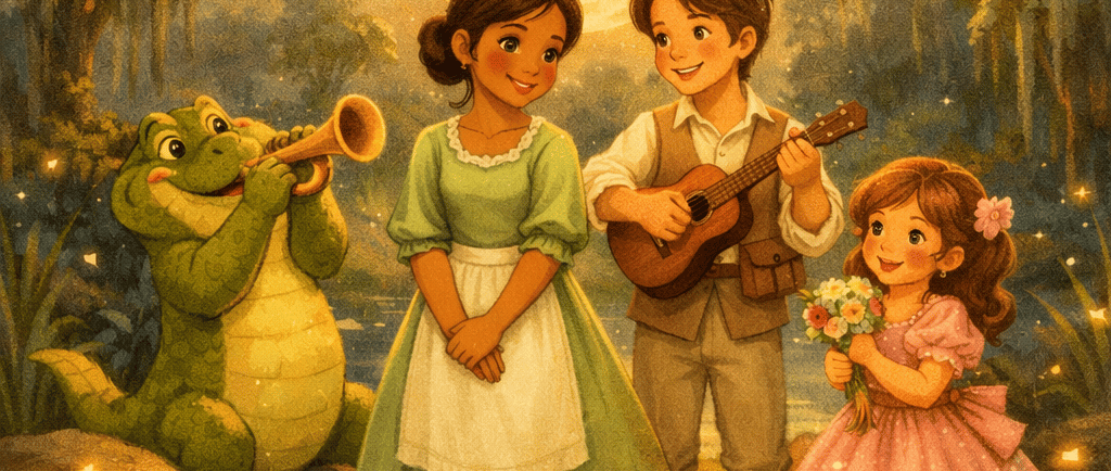 Era uma vez, em uma cidade cheia de música alegre e cheirinho de comida gostosa, uma jovem chamada Tiana.