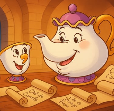 — "Mamãe, como a gente sabe qual é o chá perfeito para a Bela?"